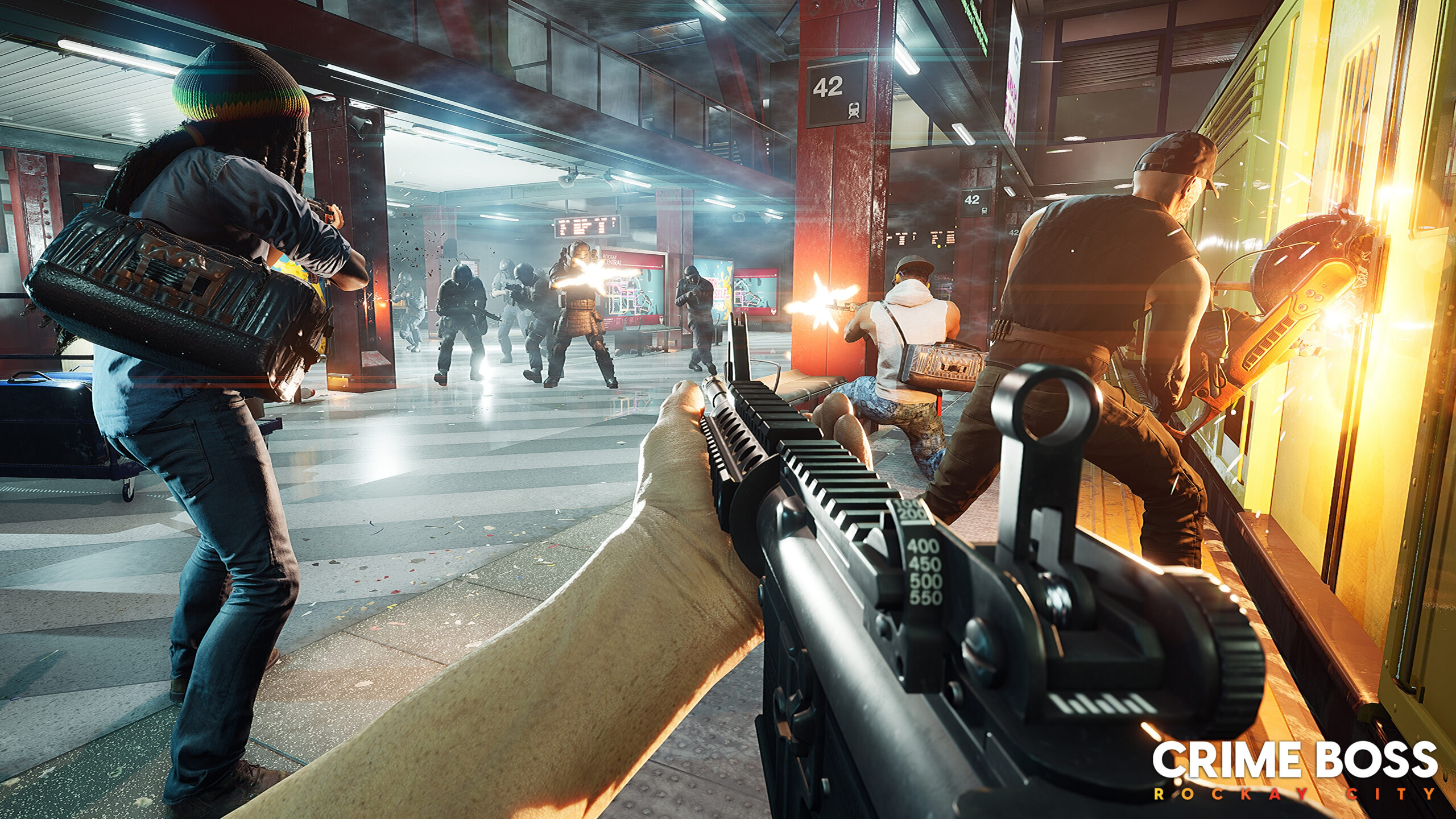Crime Boss: Rockay City is a 1-4 player co-op FPS heist game with enjoyable stealth and epic killing spree combat. Featuring a solo roguelike campaign that combines FPS and strategy elements with the most hilariously cheesy voice acting that make you laugh.